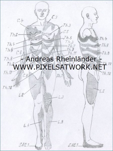 Die Handzeichnung basiert auf den schriftlichen Schilderungen von Henry Head - aus seinen Originalarbeiten sowie anderen Arbeiten, die seine Arbeit beschrieben haben.